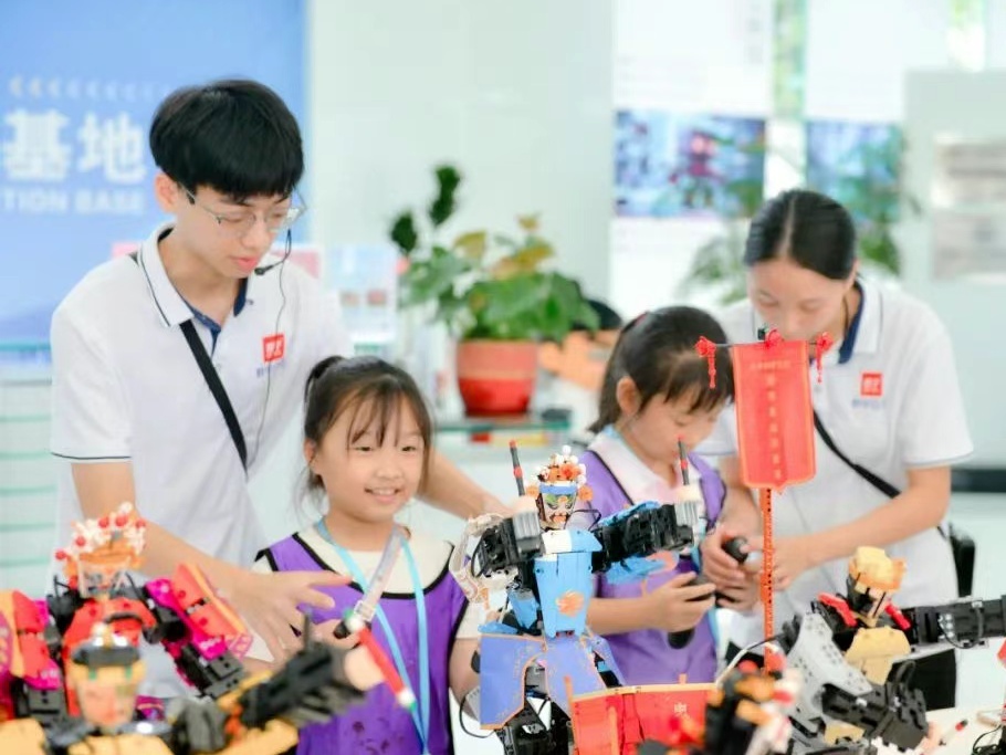而广东群宇人工智能基地提供了丰富多彩的科普展品和互动体验设施,孩子们到这里可以近距离观赏英歌舞机器人,感受科技与传统的融合,体验非遗文化新魅力。
